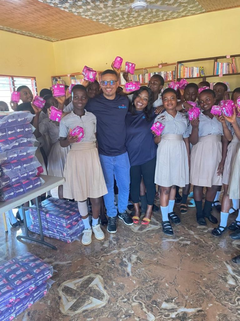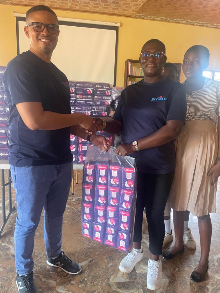 Sanitary Pad Donation Drive In the Eastern Region of Ghana, we supported primary and JHS students at Aponoapono M/A Primary and JHS in Suhum by donating sanitary pads. This initiative aimed to enhance menstrual hygiene and reduce absenteeism among schoolgirls.